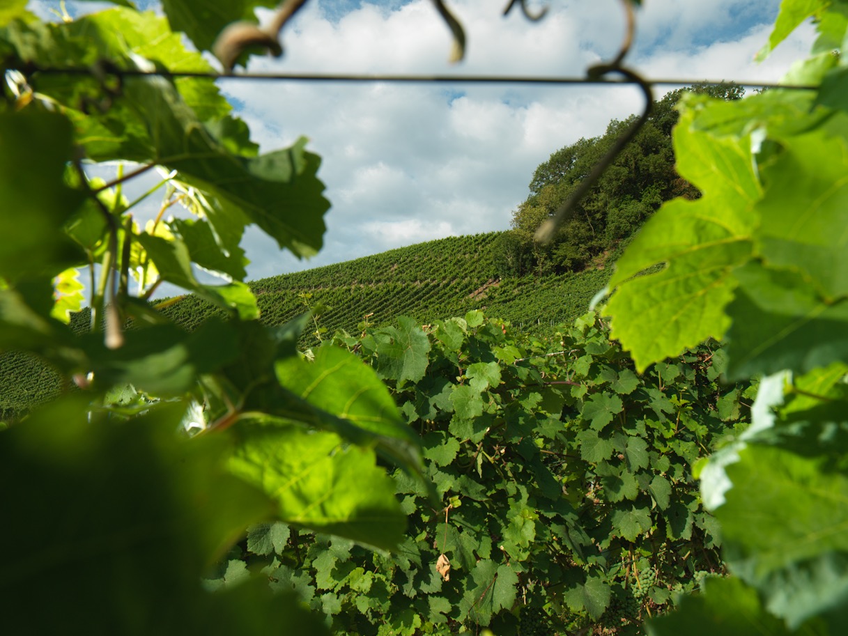 Der ABTSBERG ist mit Sicherheit die renommierteste Lage unseres Weinguts. Sein Untergrund besteht hauptsächlich aus bläulichem Devonschiefer. Die runde Kuppe dreht von Südost bis Südwest und erreicht eine Hangneigung von bis zu 75%. Im Zentrum dieser Kuppe befinden sich die besten Parzellen des Weinguts. Die fortlaufende Fläche des ABTSBERG schließt sich westlich ab und bildet einen fließenden Übergang zum HERRENBERG. Der Boden ist tendenziell flachgründiger und skelettreicher als im HERRENBERG was sich in der ausgeprägten Mineralität der Weine widerspiegelt. Die Weine aus dieser 14 Hektar großen Lage gehören zu den langlebigsten der Welt. Im ABTSBERG wächst neben Riesling auch unser Pinot Noir.